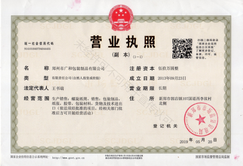 鄭州廣和包裝制品有限公司是一家深耕環保包裝制造領域多年的企業,專注于為全球客戶提供高品質、可持續的工業紙管與膠帶產品。我們以創新技術和嚴格品控為核心,致力于減少環境足跡,助力各行各業實現綠色轉型。
